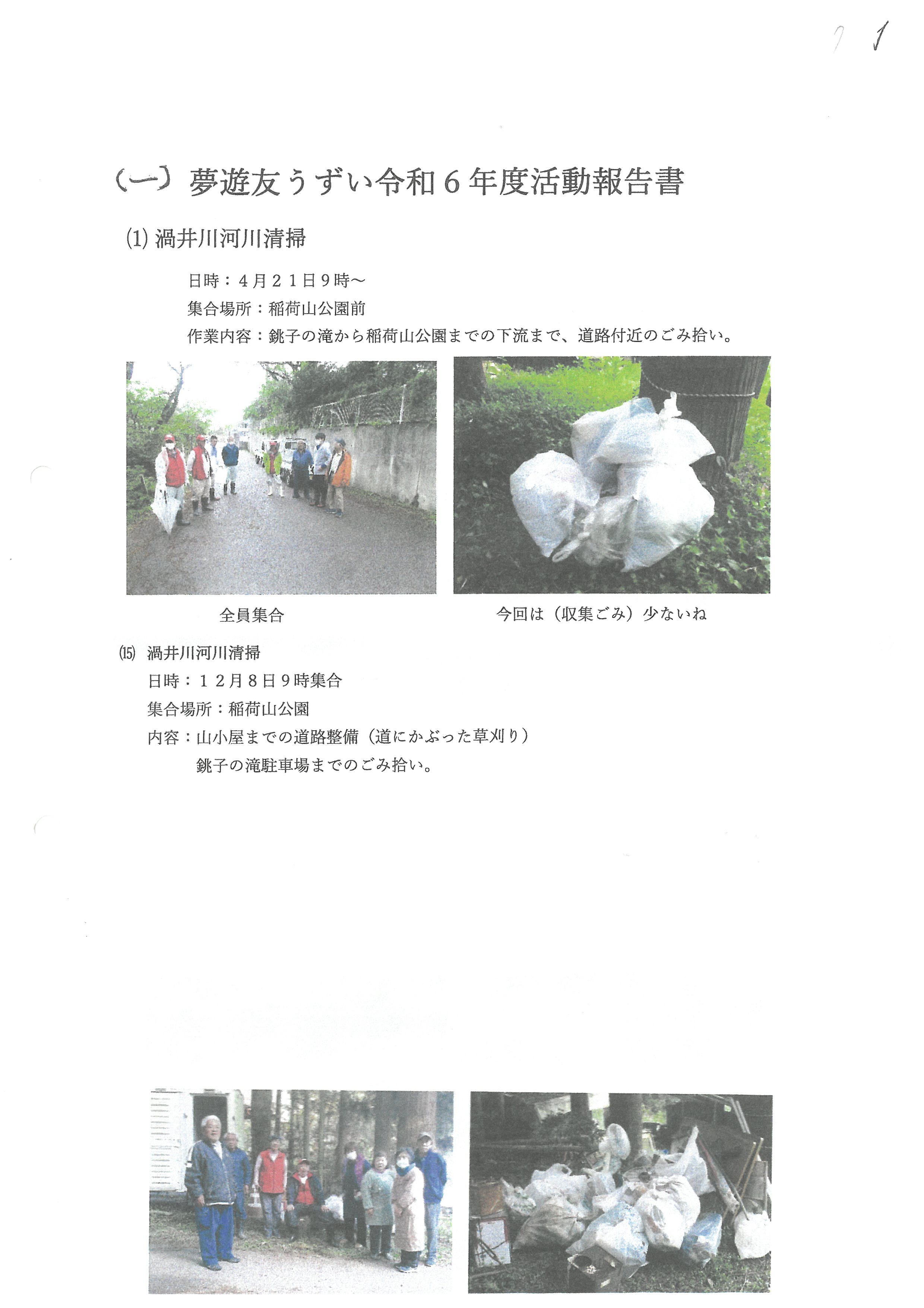 渦井川の清掃を年に2回(のべ参加人数27名)実施しました。