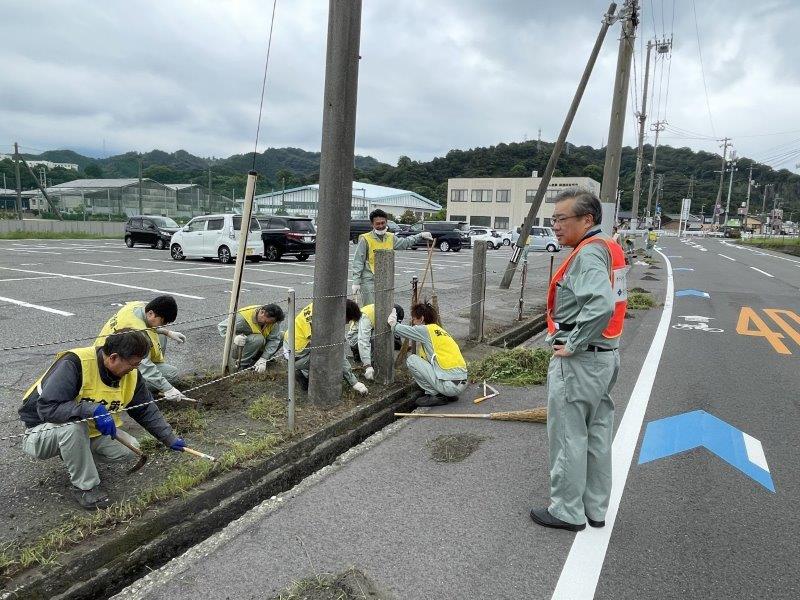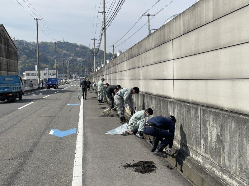 工場前の側溝及び駐車場の清掃作業などを年2回実施(のべ参加人数270名)しました。