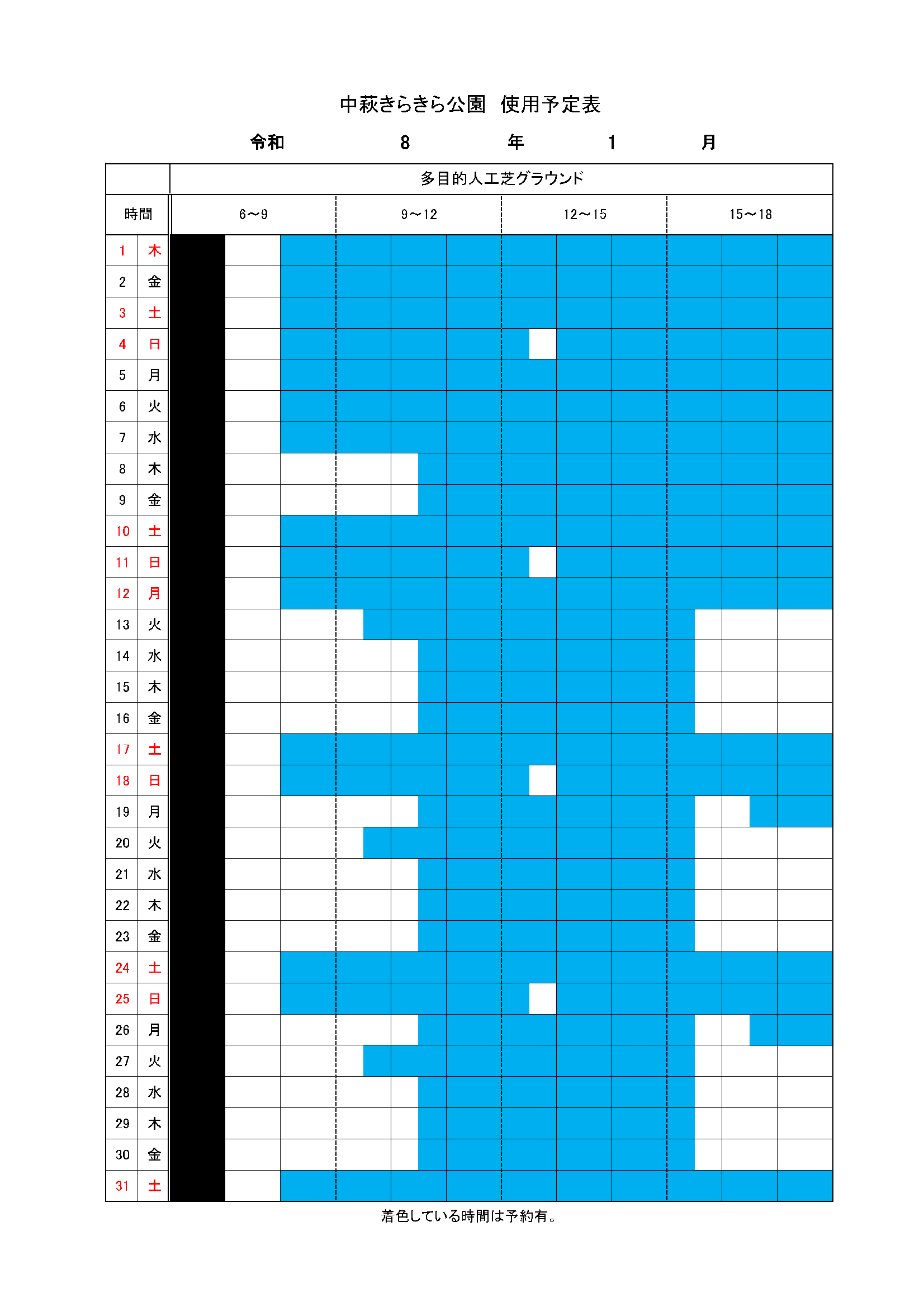中萩きらきら公園多目的人工芝グラウンドの予約状況について